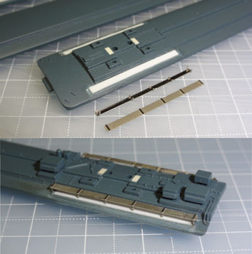 パンタグラフ廻りのランボード(洋白エッチングにて細い足を表現)。阪急2000系から3000系まで使える他、阪急以外にも使えます。Aは主に非冷房車用で、歩み板上に帯状のディテールがあるもの。 |